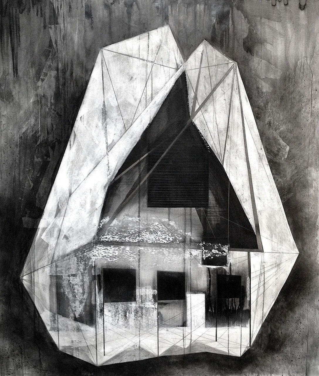 An ongoing series of drawings depicting imaginary survival shelters, each shelter is composited from existing and conceptual domestic architectural forms.
